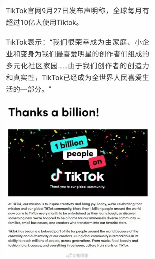 在tiktok之前,实际上中国一直在国际上缺乏有话语权的媒介平台,Facebook对tiktok从产品模仿到起诉,尽管tiktok将数据放在境外,特朗普在任后期试图封禁tiktok并引发众多美国互联网公司的收购,实际上真正唤起人们对于算法技术的重视,而打破tiktok被收购风险的僵局的是商务部适时推出了算法技术本身作为技术不能转让出境。如今tiktok依然掌握在字节跳动手里,根据9月27日,tiktok全球月活用户为10亿。