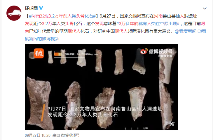 这是目前河南已知年代最早的早期现代人化石,意味着3万多年前的中原地区就已经出现了早期现代人的活动踪迹。