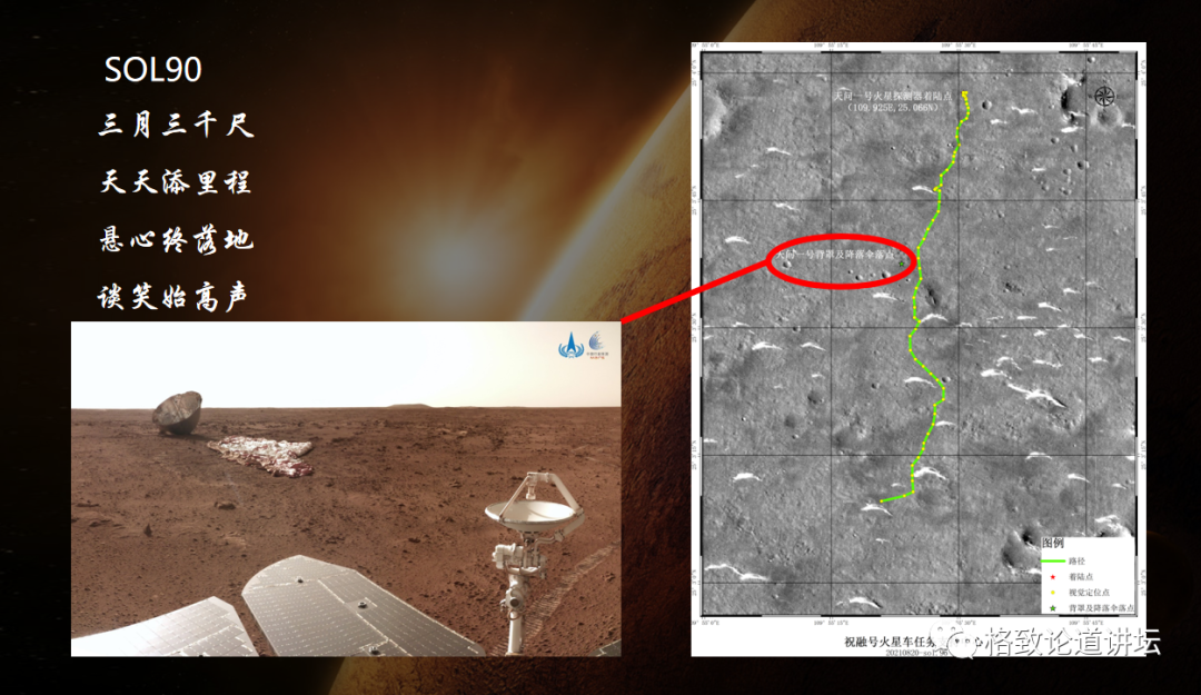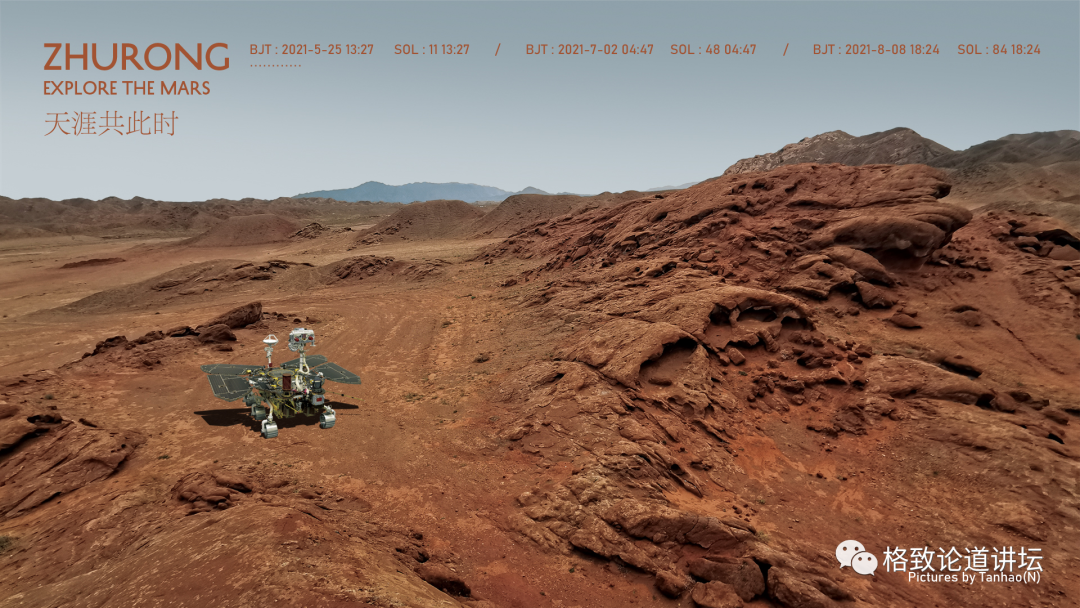 我把它做成了一张图片,起了一个名字叫做“天涯共此时”。在我们过去的三个月里,祝融号有三个时刻和我们是共此时的。