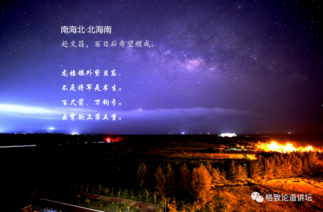 到了文昌之后,我们要有5天的隔离期,不能出房间。为了表达我们未来100天要在这儿干活的决心,我写了一首词《南海北·北海南》: