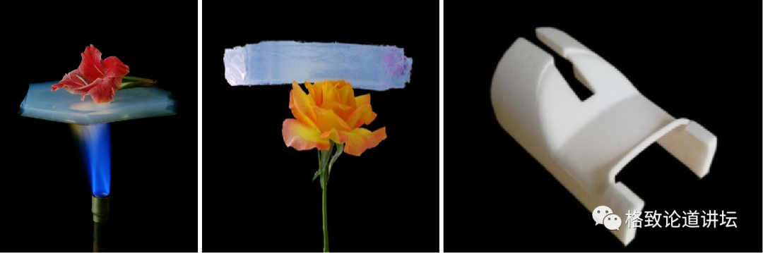 气凝胶的特性(左、中)和火星车上实际使用的气凝胶(右)