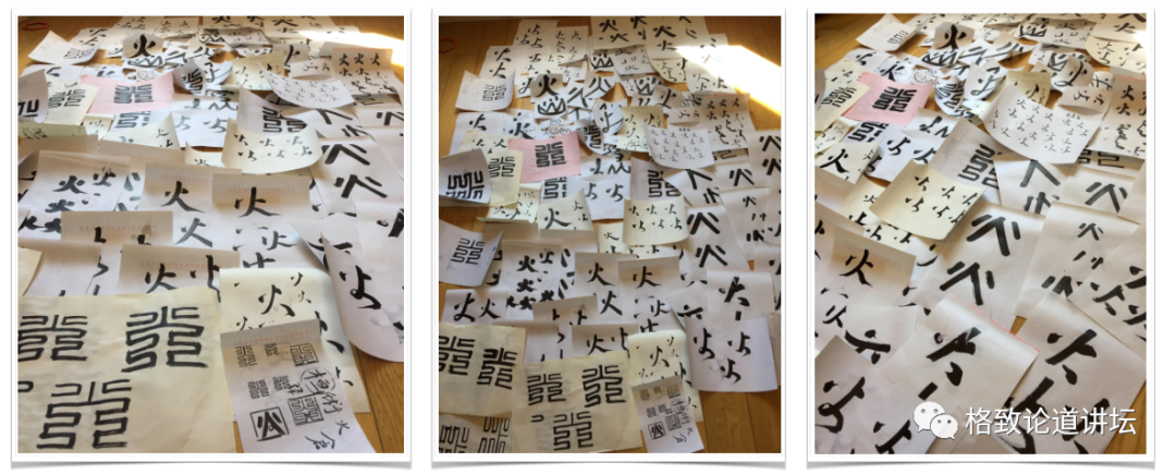 刚开始我们想放一个中国结,后来觉得把中国结放脑门上好像也不太对。还有个小朋友说:“要不我们画个王字?”后来我一想,还是用书法比较好,写个火星的“火”字。我们写了很多,大概有几千张,我们选了其中的几款投票。