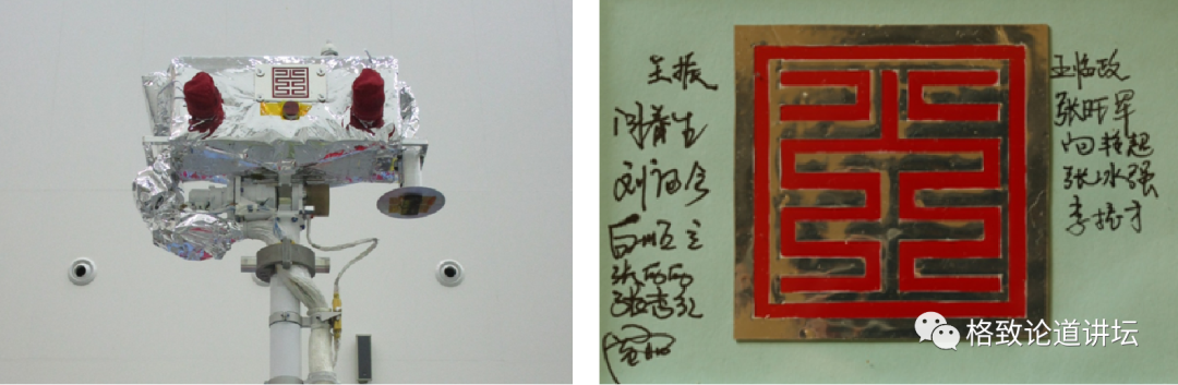 我们做航天工作其实都是要考虑备份的,所以真正做的时候多做了一枚。这一枚放在了照片框里,由相关的设计师签名,现在放在我的办公桌上。所以,这个车标有两枚,一枚在火星,一枚在我办公桌上。