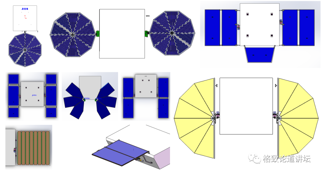 在整个设计过程中,我们设计过很多太阳翼的方案,包括一个圆盘形状的,或者两个圆盘形状的,甚至还曾经设计过类似于蝙蝠翅膀的样子。