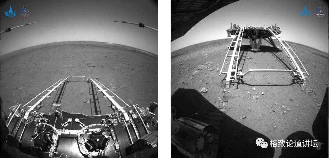 左图证明的是火星车降落在火星的表面上,右图证明的是车已经行驶到了火星的表面上,这对我们来说是一个标志点。