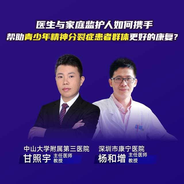 上海报业集团海上名医特邀中山大学附属第三医院甘照宇教授、深圳市康宁医院杨和增教授,共同带来《医生与家庭监护人如何携手,帮助青少年精神分裂症患者群体更好的康复?》视频直播。