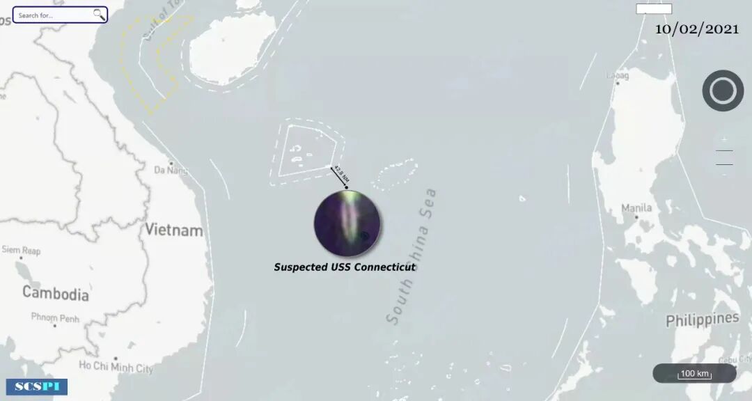 长期跟踪南海问题的智库“南海战略态势感知计划”,借助船舶自动跟踪系统、空中广播自动监视系统和遥感卫星影像等开源数据监测到,10月3日上午10时左右,在西沙群岛东南约48.7海里处,发现一艘疑似“海狼”级潜艇处于上浮航行状态。随后监测到的路线显示,这艘潜艇驶向关岛。