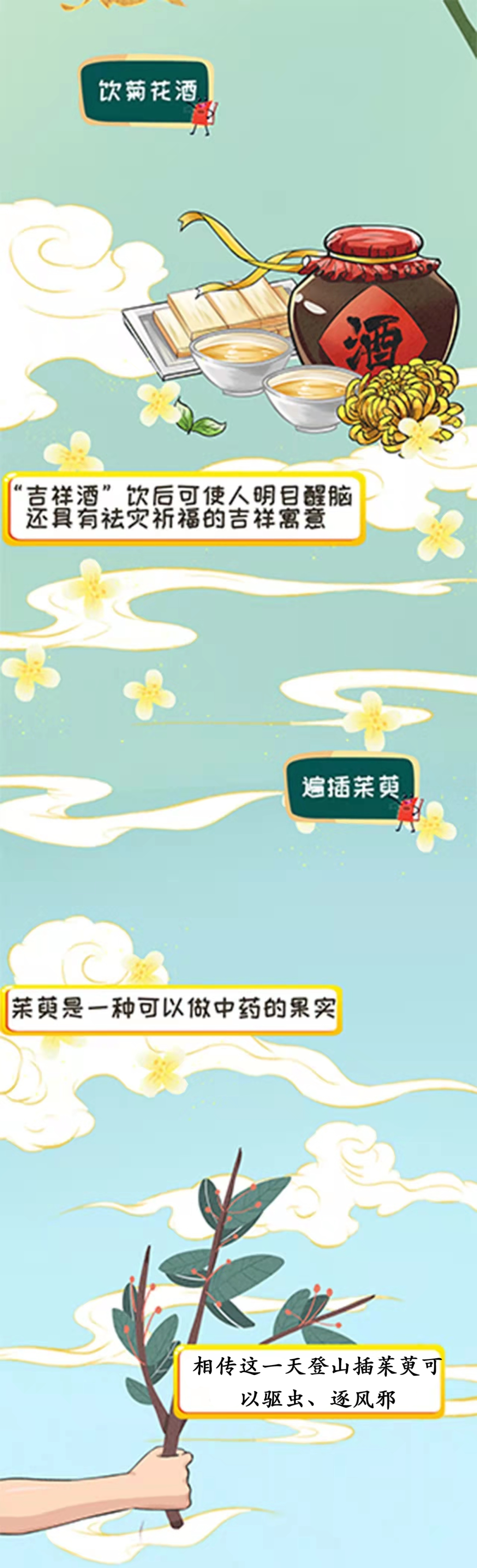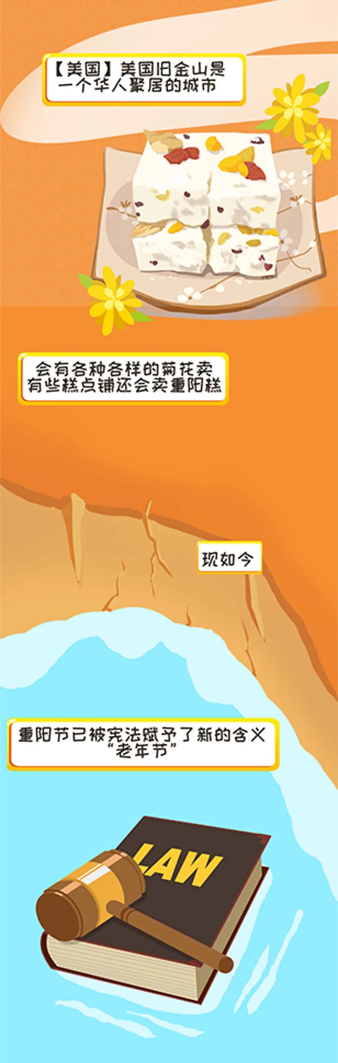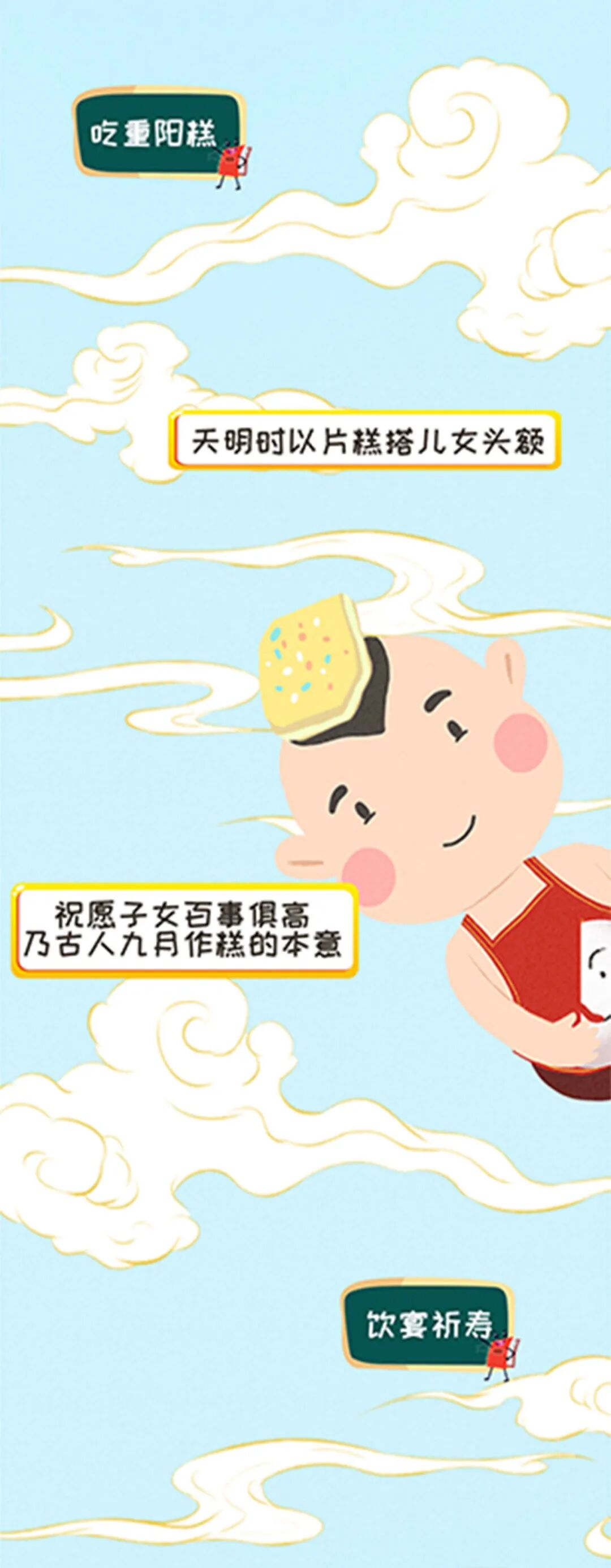 在重阳节这一天,活动还挺丰富,除了有登高、赏菊、放纸鸢和吃重阳糕之外,还有敬老。