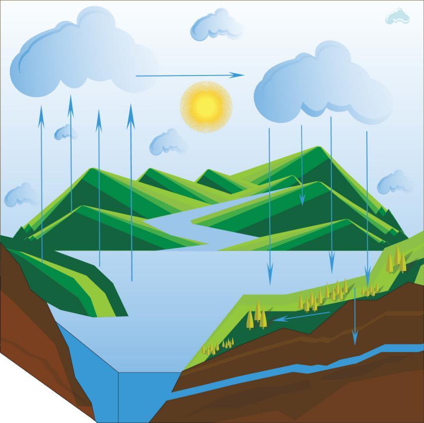 要回答这个问题,我们首先需要了解一下什么是水循环。水循环是地球表面的水,比如说江河湖海,它里面的水在太阳的照射下,直接蒸发和植物蒸腾变成水蒸气之后,水蒸气上升到天空,凝结成为云,在大气环流的推动下、在空气中随气流运行,到达一定的条件,部分变成了雨或者雪,然后降落到地表或者水面上。降落下来的水有些渗入地下,有些经植物所吸收、汁液蒸腾进入大气层,其余的则沿着地表径流汇入到江河湖,最后流入大海。数10亿年以来地球上的水正是在这样不停的运动中循环往复成就了如今的蓝色星球。