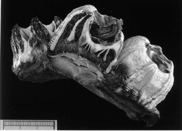 一旦它们对自己的位置感到满意,这些藤壶就会开始挖洞。成年后,它们会在壳内形成管状的腔体,这些腔体实际上会吸引生长中的鲸鱼皮肤。