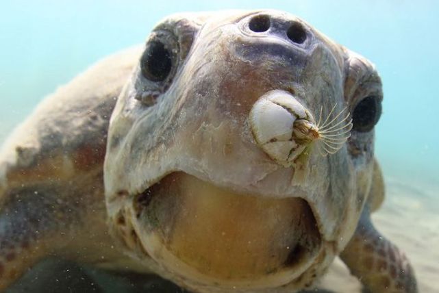 附着在不会动的峭壁,相对简单,但是对于游来游去的庞然大物来说,藤壶也丝毫不会胆怯。
