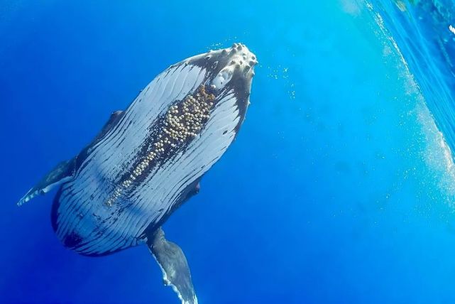 有时,一头座头鲸可以容纳近1000斤的藤壶,这听起来很恐怖,但是这个重量对于座头鲸近8000斤的体重来说,相当于夏天我们身上的一件短袖的重量。