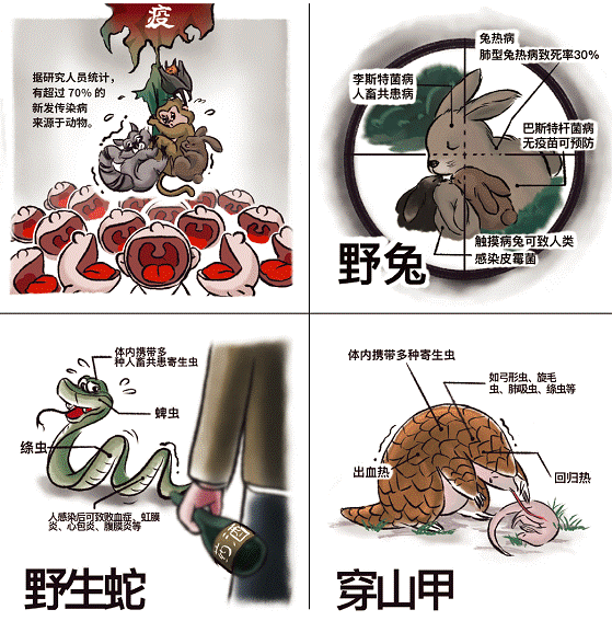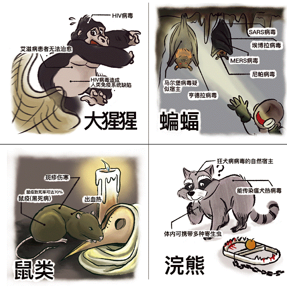 蝙蝠这种动物生来就自带百余种病毒,它们本来很少有机会直接将病毒传染给人类。然而,一碗碗蝙蝠汤,一桌桌“蝠”寿宴,人类把这些原本离自己很远的病毒吃进了体内……