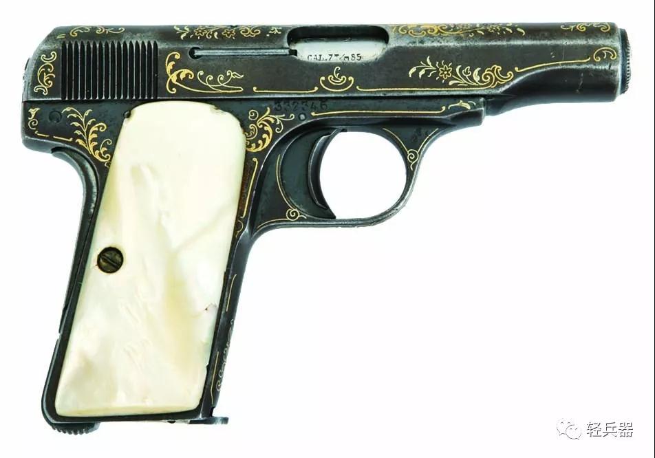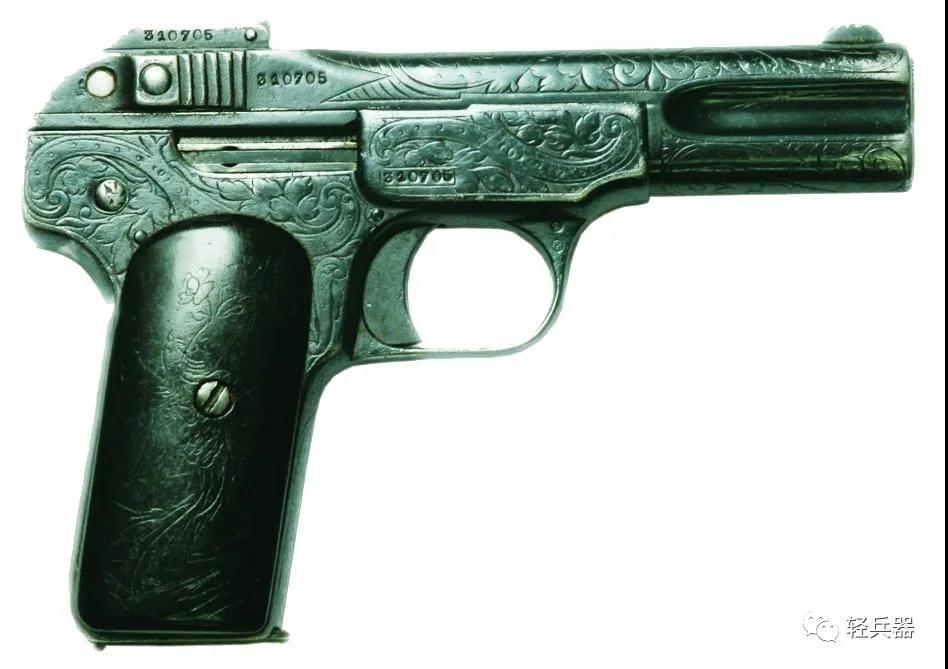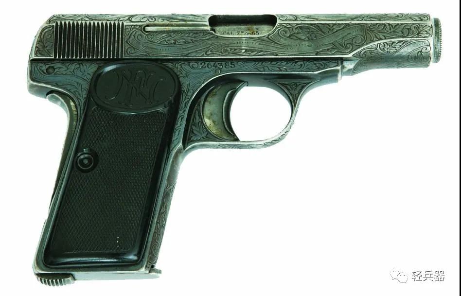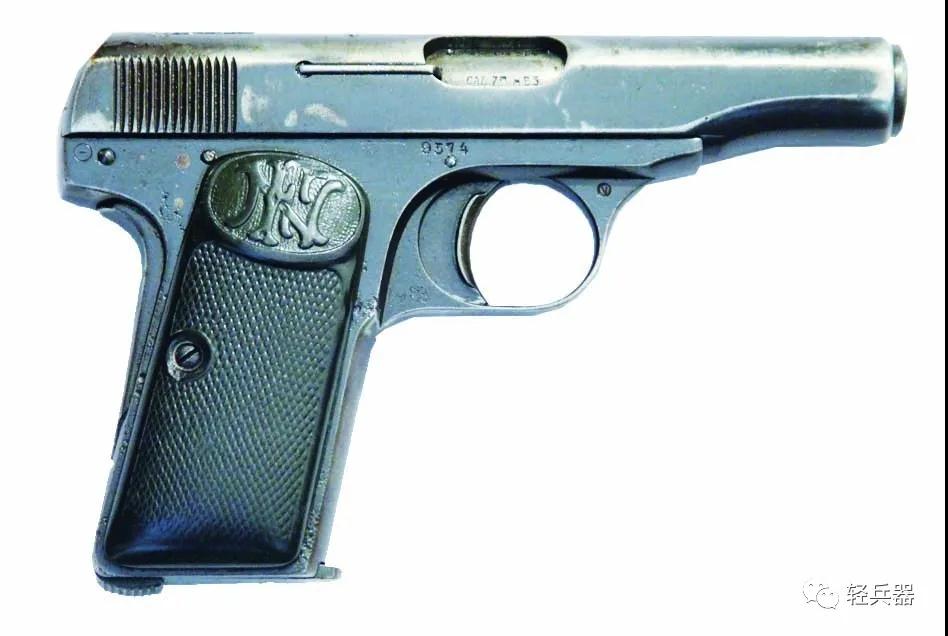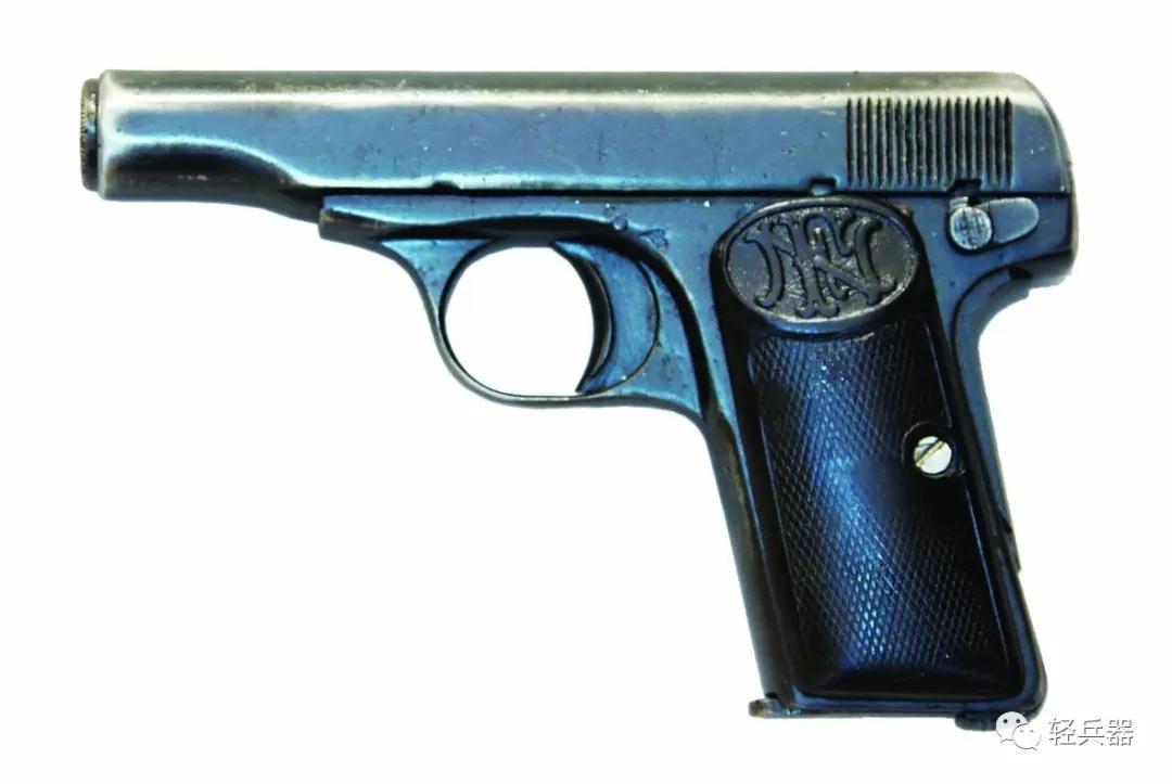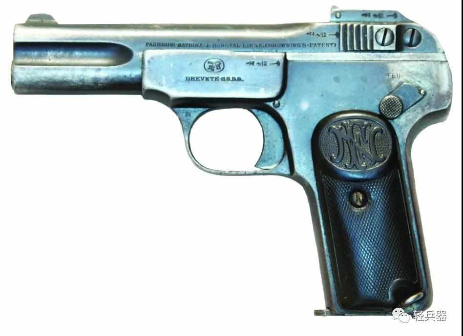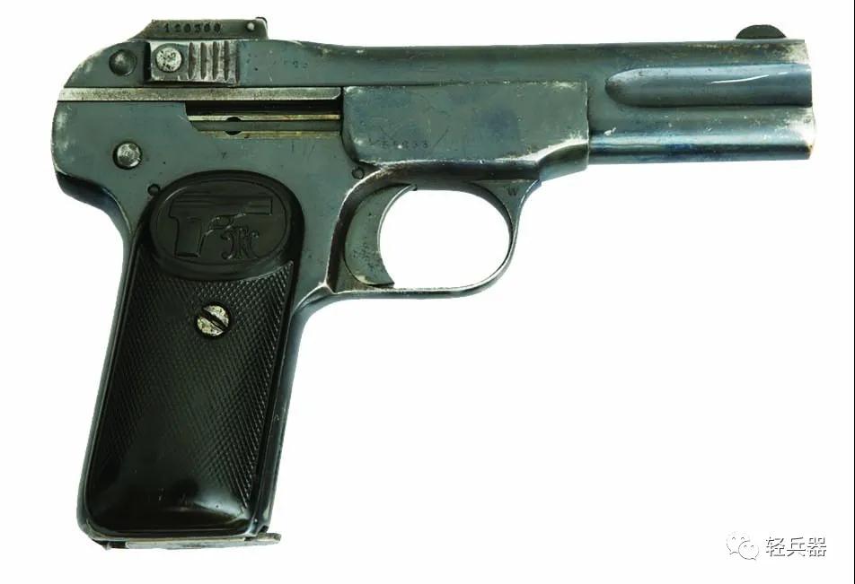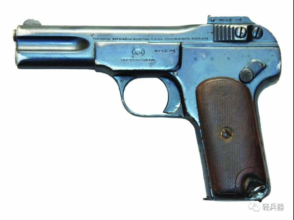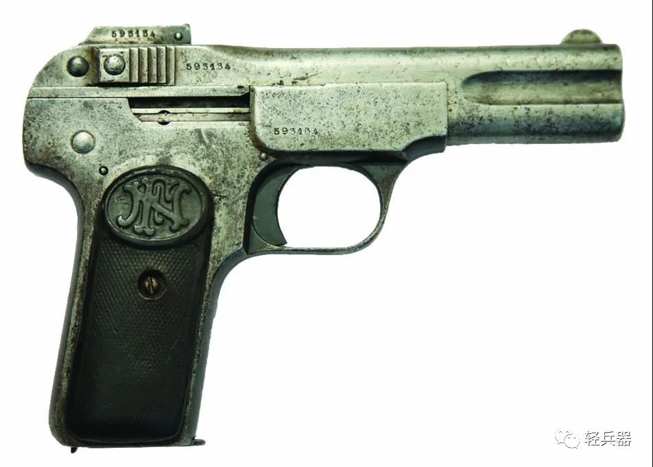 FN勃朗宁M1910手枪,早期产品套筒前端为长曲线