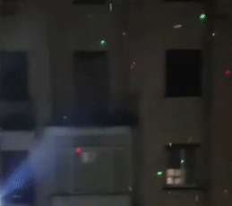 气氛不够浓,让投影灯化身闪耀的灯球,小区宛如蹦迪现场: