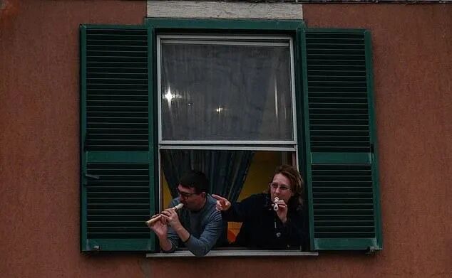 意大利广播电视公司交响乐团的小提琴手Aldo Cicchini也跑到自家阳台参与了演奏。
