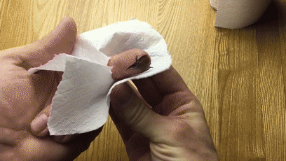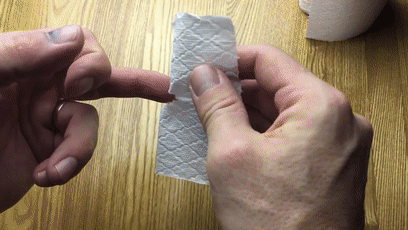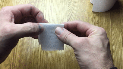 当然不是用它擦屁股,重点是你会发现手纸中间,有了一个洞。手纸不够,上手指,将手指穿过手纸的洞口,然后用于擦拭: