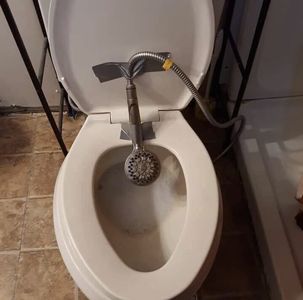 逆向淋浴喷头,准备把屎冲下去: