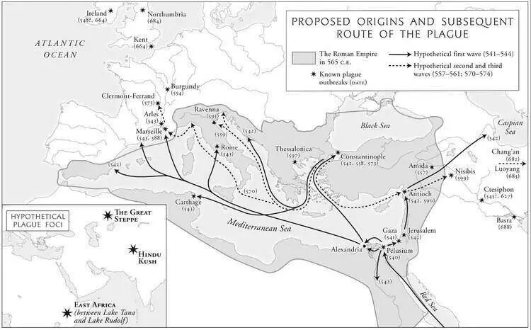 当代研究者通过对查士丁尼时期墓地人骨的采集分析,证实了查士丁尼大瘟疫的罪魁确实是耶尔森氏鼠疫杆菌的一种。至于病菌的源头,学界有中亚天山山脉、印度、埃塞俄比亚等多种假说,埃及不过是个中转站。