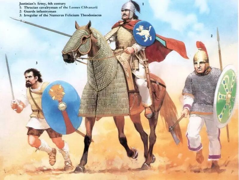 军事史研究指出,公元五世纪时拜占庭帝国的总兵力有约35万人,查士丁尼登基之初膨胀到65万。除去大部分牢牢束缚在边境和各行省从事被动防御的「边防军」和「野战军」,可以用于机动远征的精锐军队起码也有两三万人。