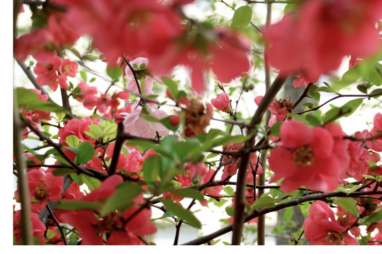 贴梗海棠如今的中文正式名应该叫做“皱皮木瓜”,也许“皱皮”给人的感觉比较有欠舒适,“木瓜”又不像是夸人的词儿,再加上“贴梗海棠”这个名字出现得更早一些,如今又比较有知名度,所以物种日历的编辑就选了这个别名,而不是中文正式名……好吧我作为作者虽然觉得迷惑,但今天要说的植物就是它。