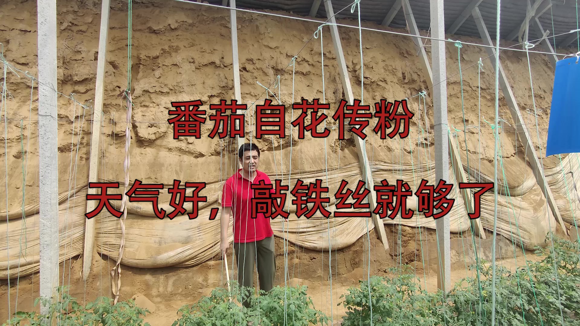 番茄自花传粉,天气好,敲铁丝就够了