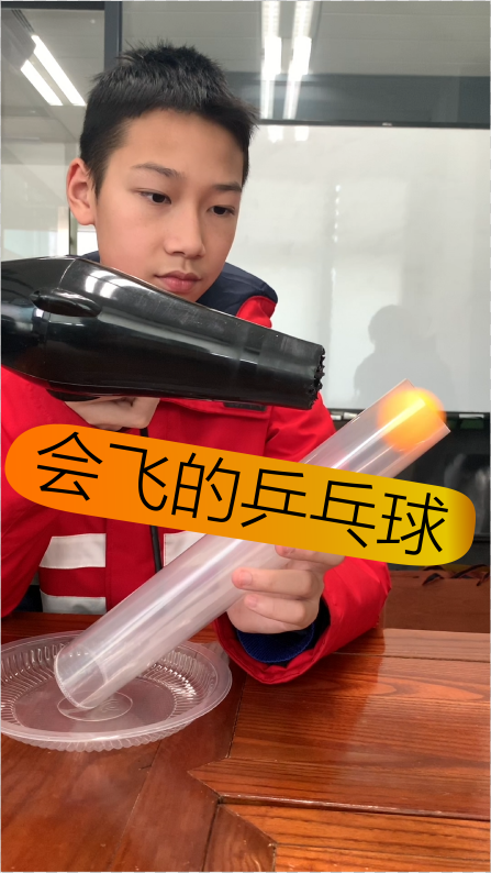 【这不科学啊】吹风机还能这么玩?让乒乓球自己飞起来!#科学实验