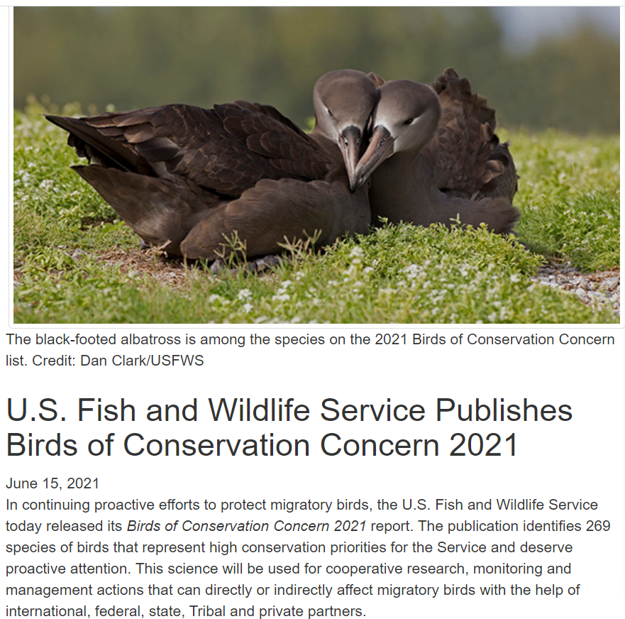 美国鱼类及野生动植物管理局发布2021鸟类保护名录