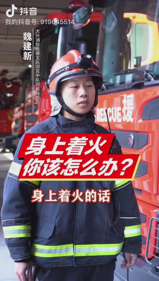 消防员演示万一你身上着火该怎么办?