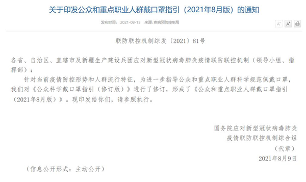联防联控机制发布戴口罩新要求:人员密集的室外场所也应戴口罩