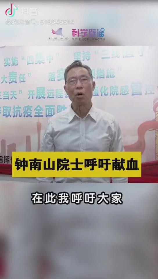 钟南山院士呼吁无偿献血:献出一份血 传递一份爱 温暖每颗心