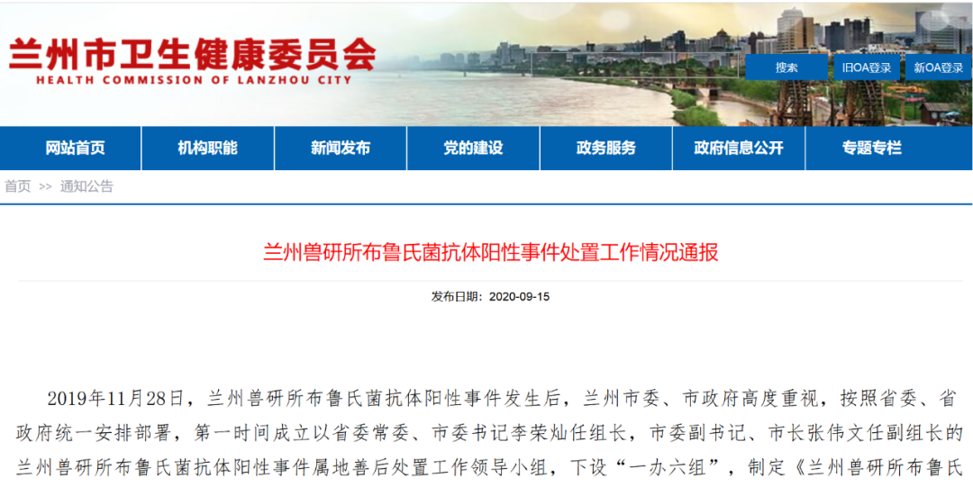 【环球科学要闻】兰州卫健委最新通报,布鲁氏菌感染确诊阳性3245人