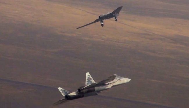 俄罗斯“忠诚僚机”,第五代战机苏-57,控制四架猎人无人机